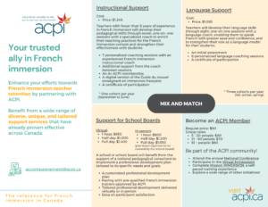 - Pairing with pre-qualified French immersion trainers approved by ACPI